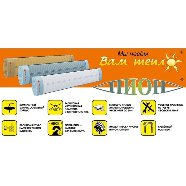 Весь ассортимент обогревателей ПИОН (Вам Тепло) представлен в разделе "Инфракрасные обогреватели ПИОН"